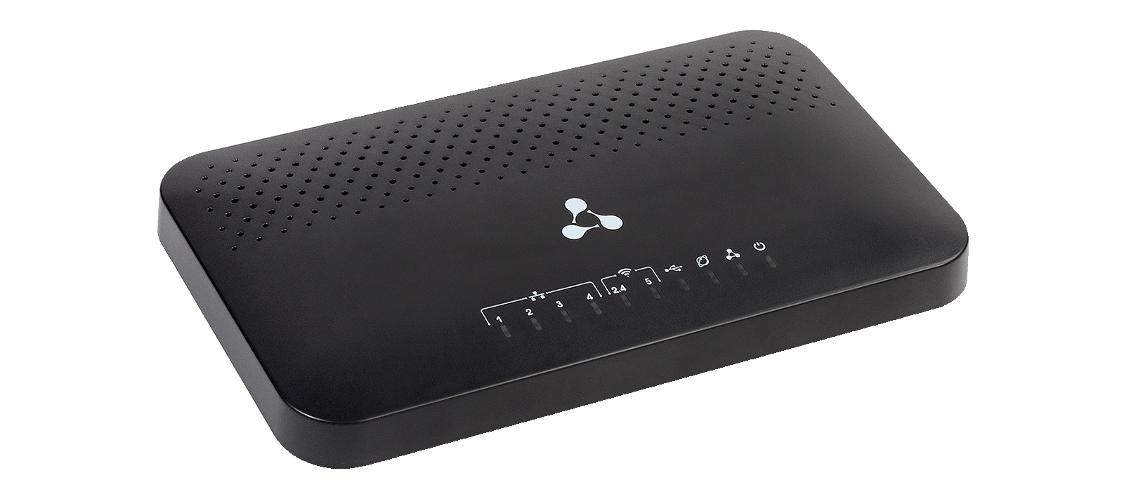 Высокопроизводительный многофункциональный абонентский терминал NTU-RG-5440G-WZ предназначен для доступа к современным услугам телефонии, IPTV, OTT и высокоскоростному интернету. В состав устройства входит контроллер для «Умного дома», поддерживающий работу с Z-Wave устройствами. Благодаря стандарту 802.11ac скорость передачи данных может достигать до 1733 Мбит/с, а два встроенных контроллера Wi-Fi сети обеспечивают работу устройства одновременно в двух частотных диапазонах — 2.4 ГГц и 5 ГГц.