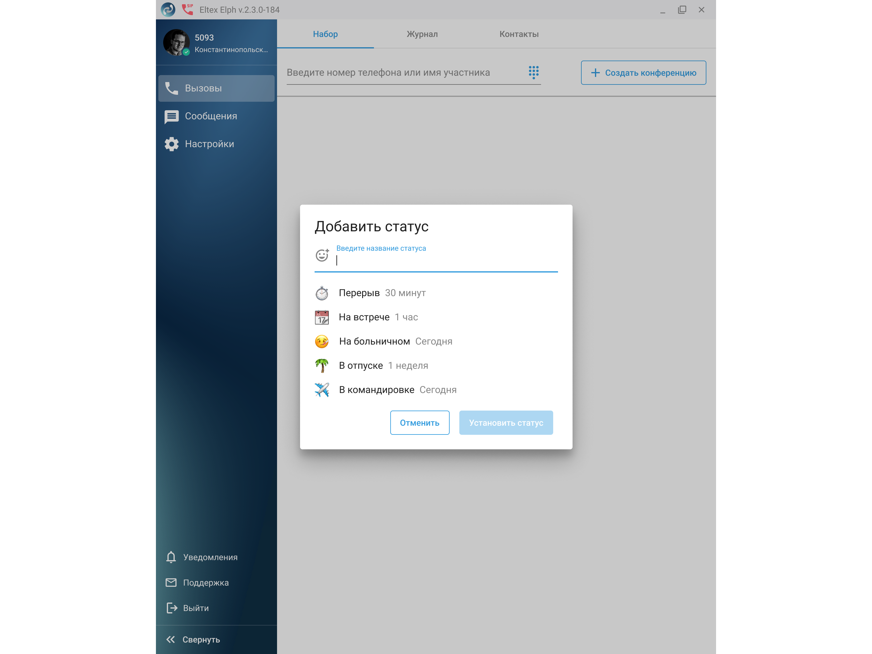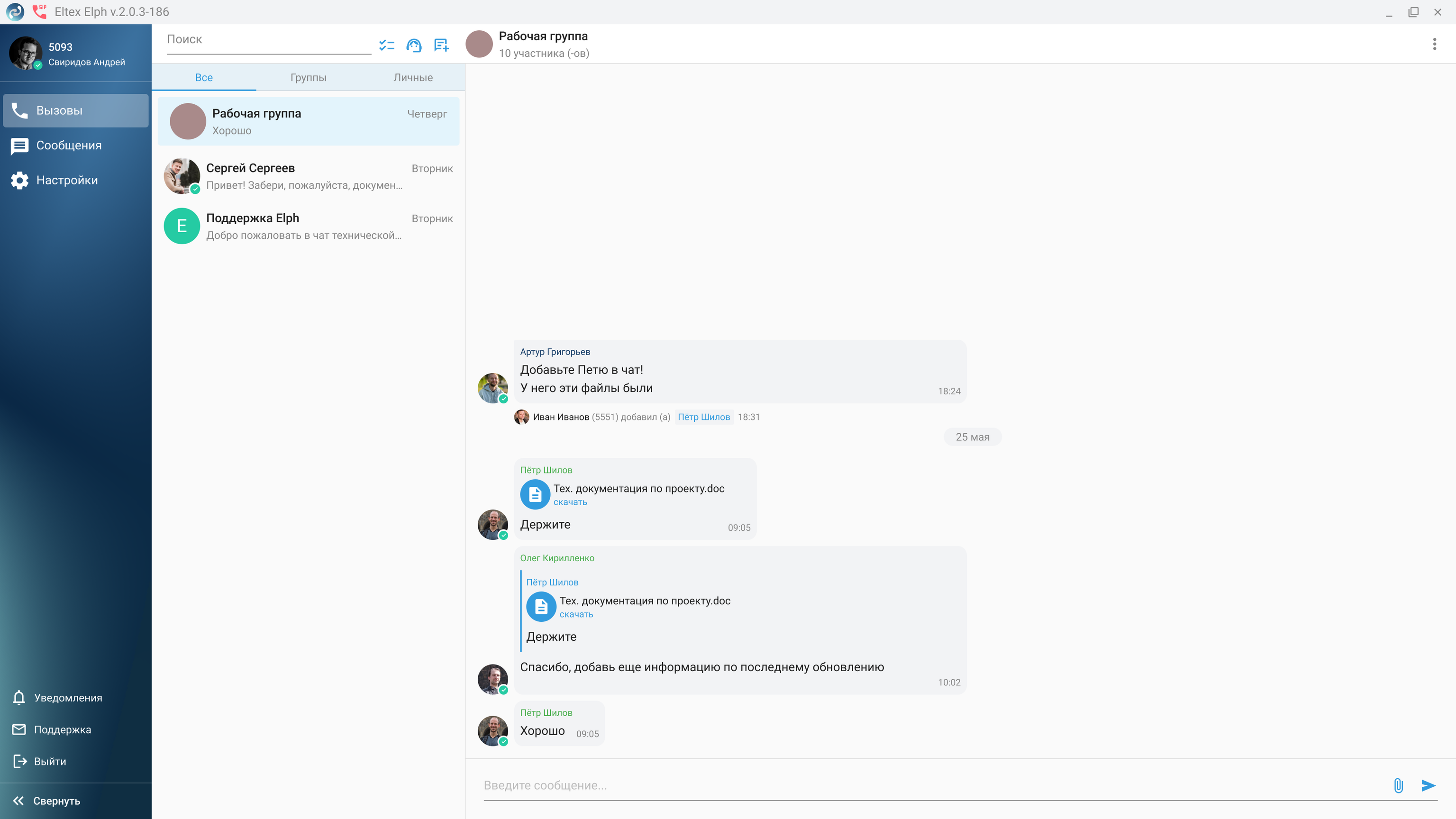 Elph Desktop – приложение для использования сервисов унифицированных коммуникаций (UC Eltex) с рабочих компьютеров на базе Windows, Linux, Mac OS. Используется как SIP-клиент с доступом к сервисам UC или ассистент корпоративного телефона, подключённого к экосистеме ECSS-10, с функцией записи звонков.