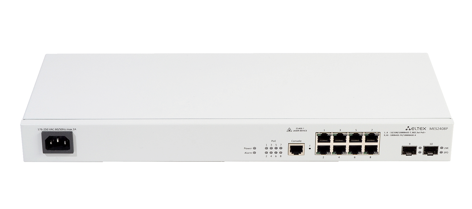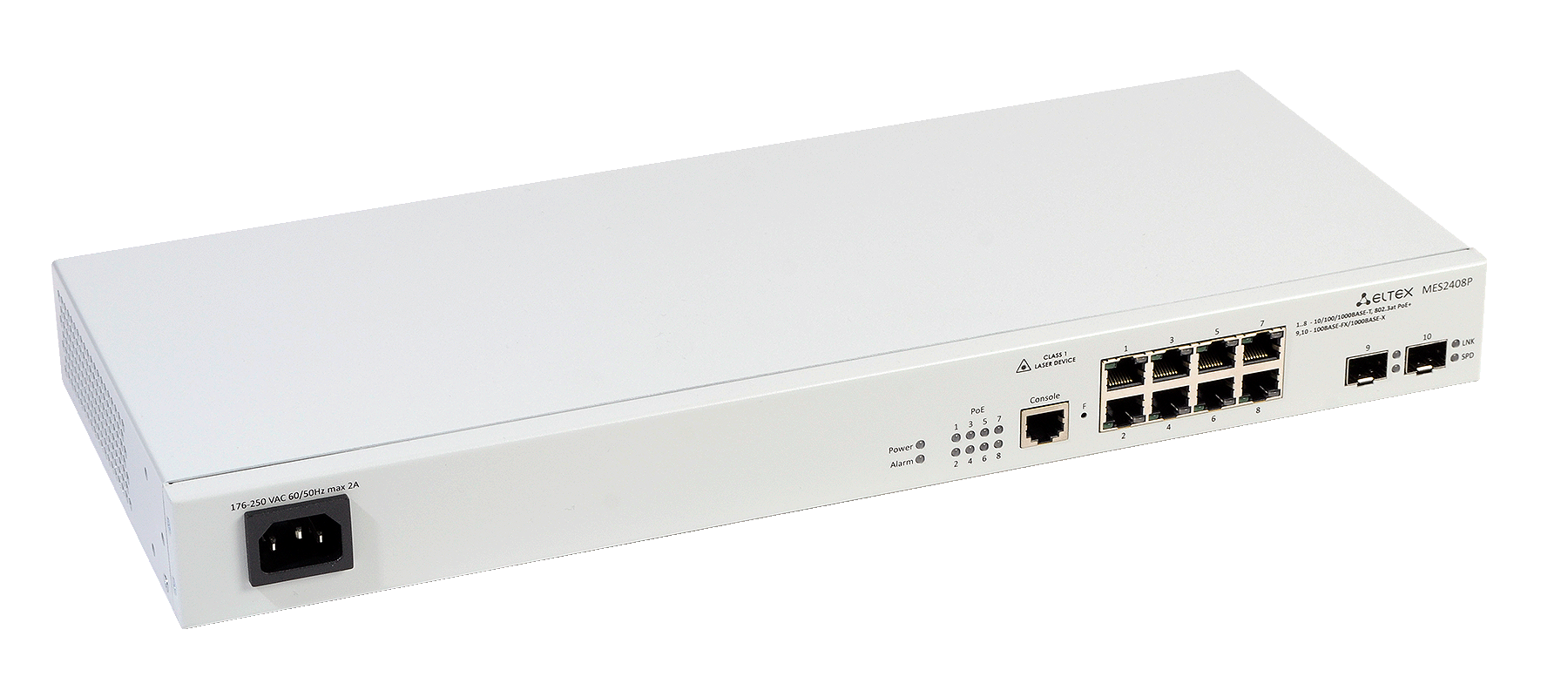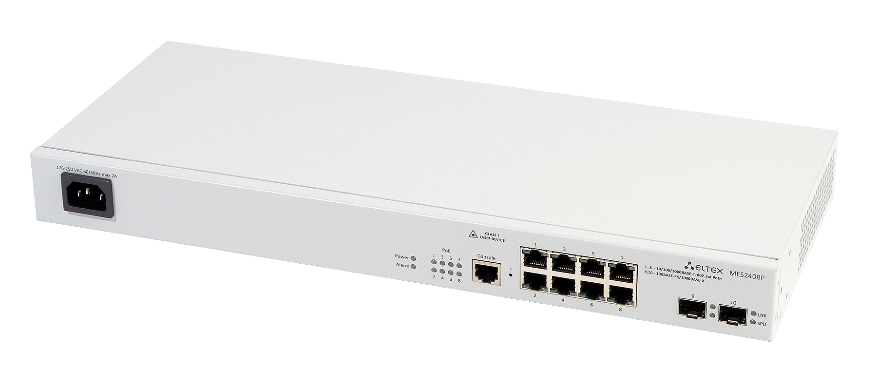 Коммутаторы MES2408P c поддержкой PoE осуществляют подключение конечных пользователей к сетям крупных предприятий, предприятий малого и среднего бизнеса, а также к сетям операторов связи с помощью интерфейсов 1G/10G.