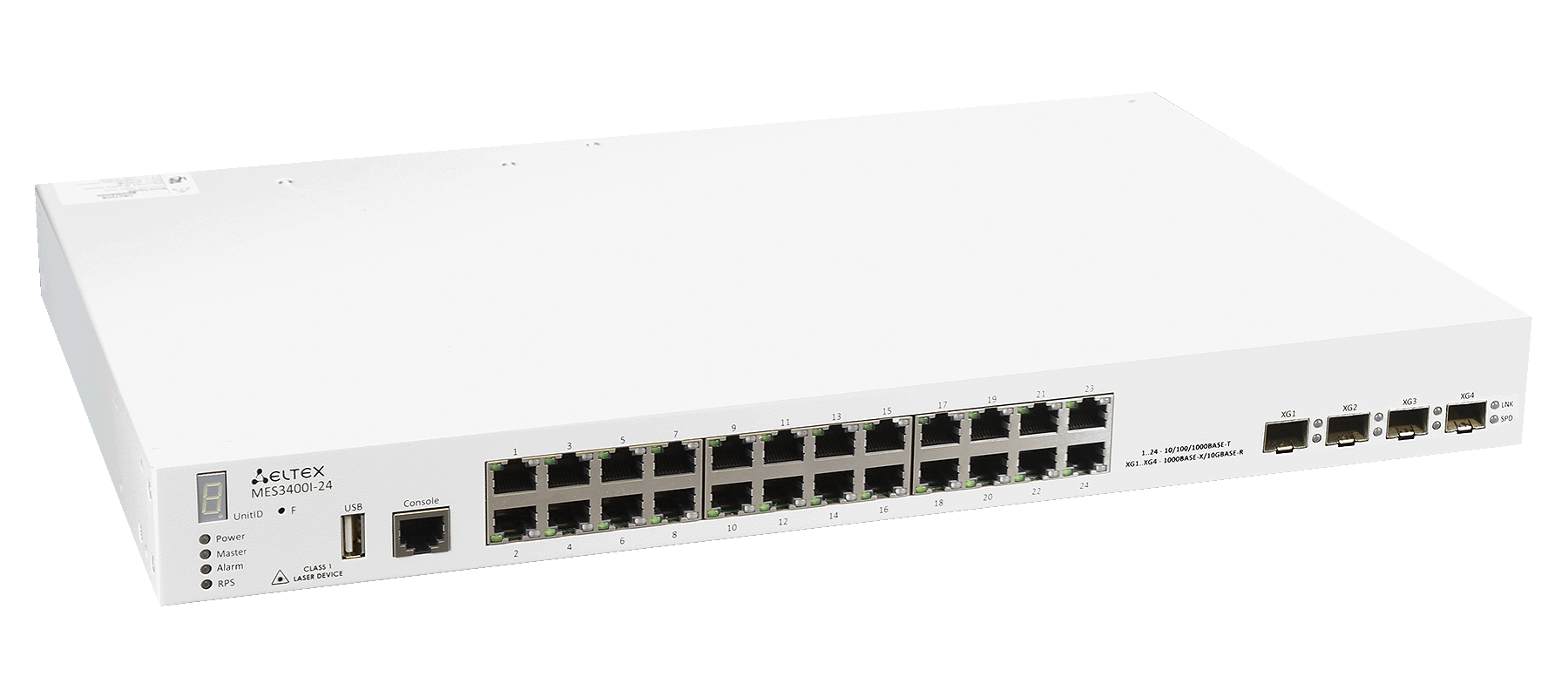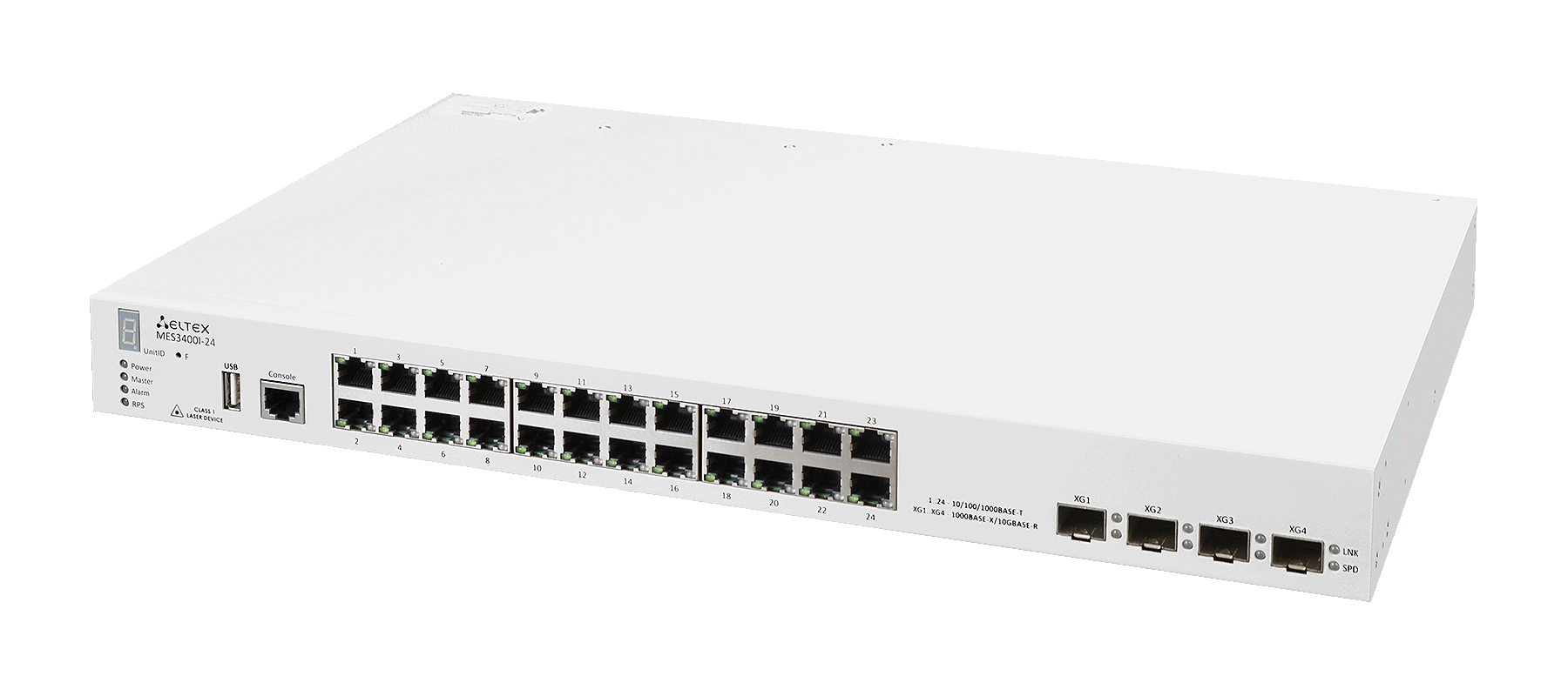 Коммутатор нового поколения MES3400I-24 предназначен для организации защищенных сетей передачи данных на объектах, где необходимо выполнение требований по обеспечению устойчивости к температурным воздействиям. Коммутатор имеет в своем составе гигабитные порты 10/100/1000BASE-T, а также порты, работающие на скорости 10G. Отличительными особенностями коммутатора являются пассивное охлаждение и резервирование источников питания с возможностью горячей замены.