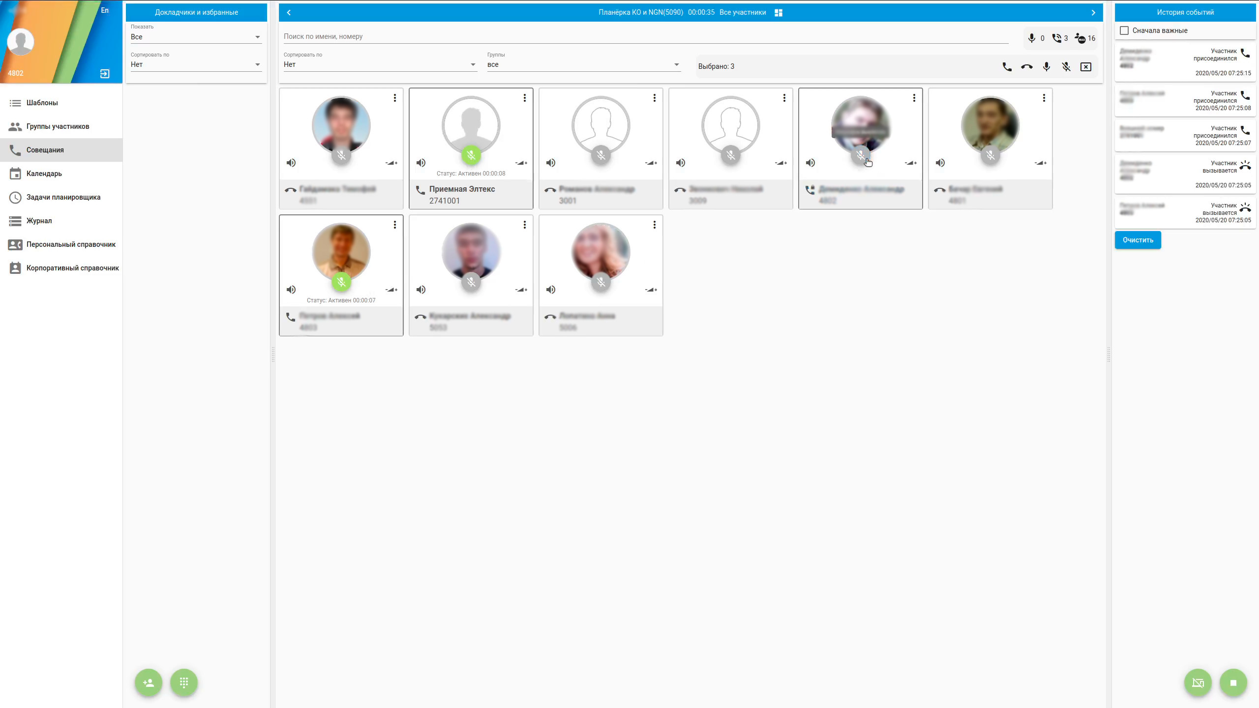 - Автоматическое и ручное добавление участников в активное совещание