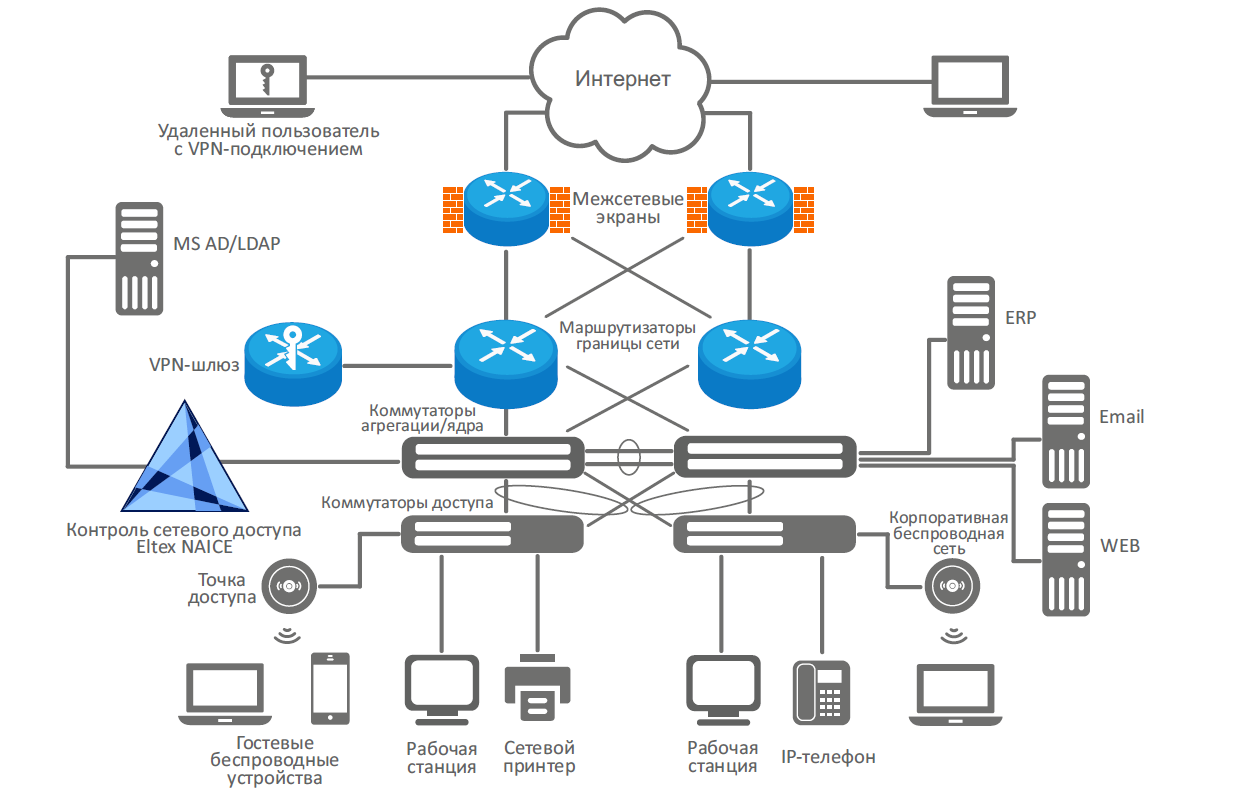 NAICE – мультивендорное решение: работает с устройствами разных производителей, поддерживающих протокол RADIUS.