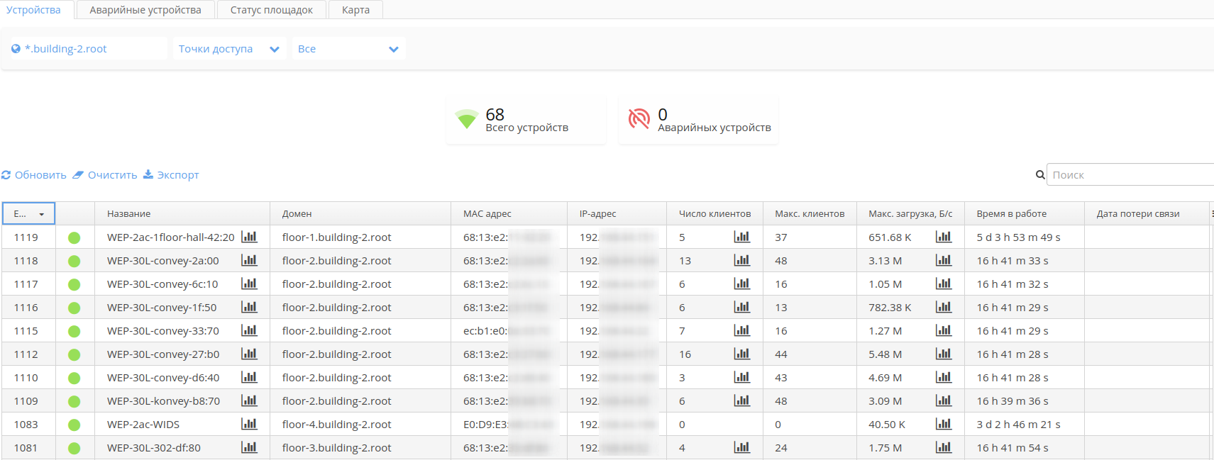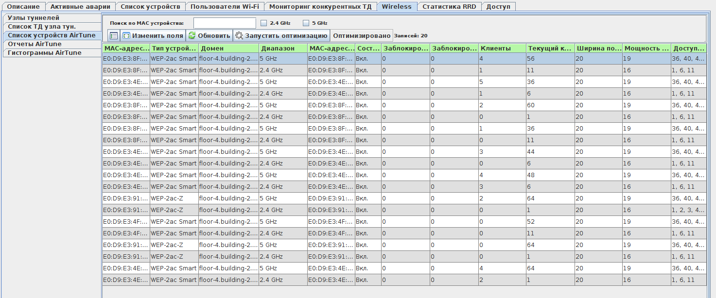 - Отображение текущего состояние всех Wi-Fi клиентов сети