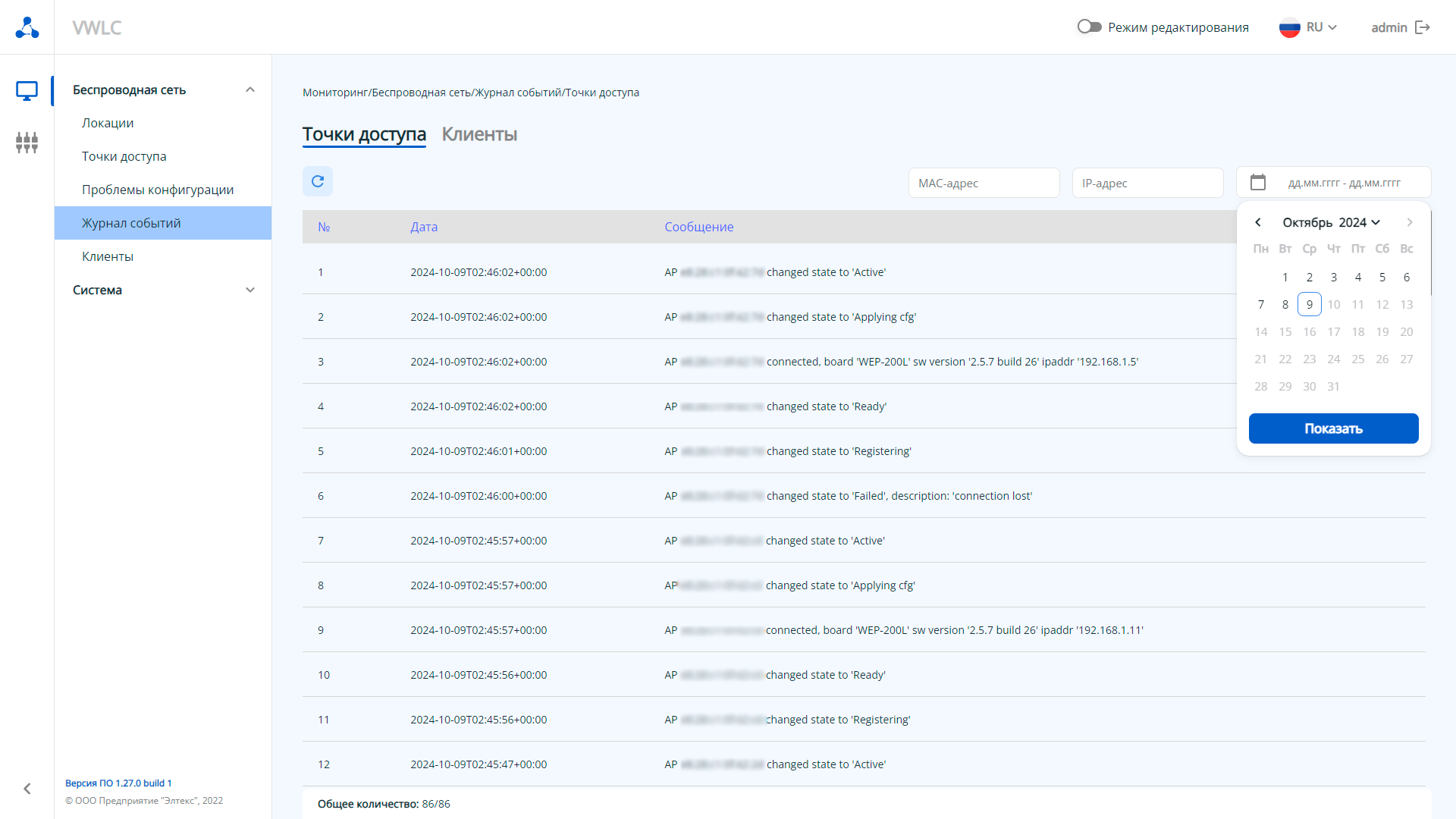 - Изменён формат задания даты в фильтрах в разделе "Журнал событий"