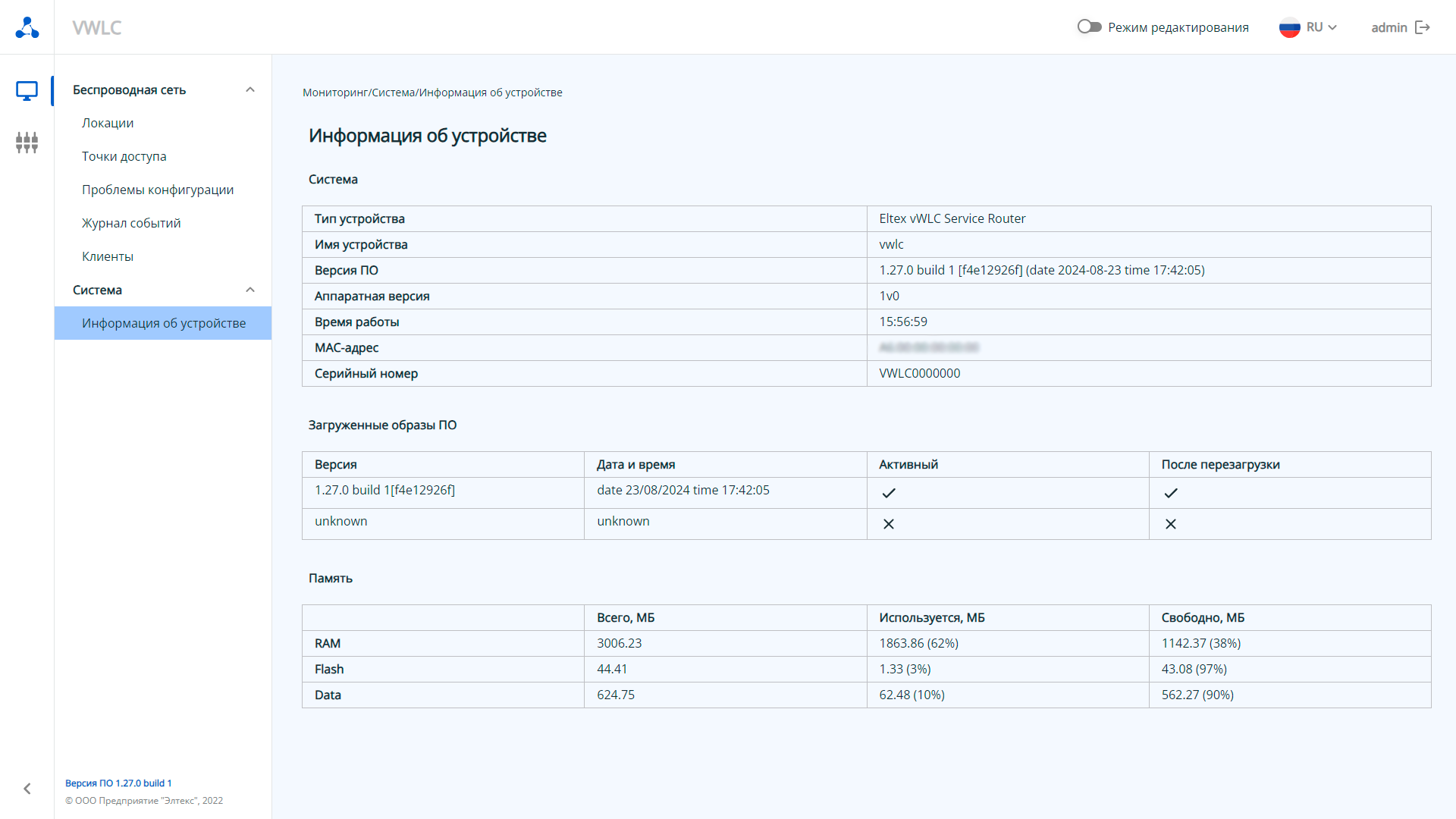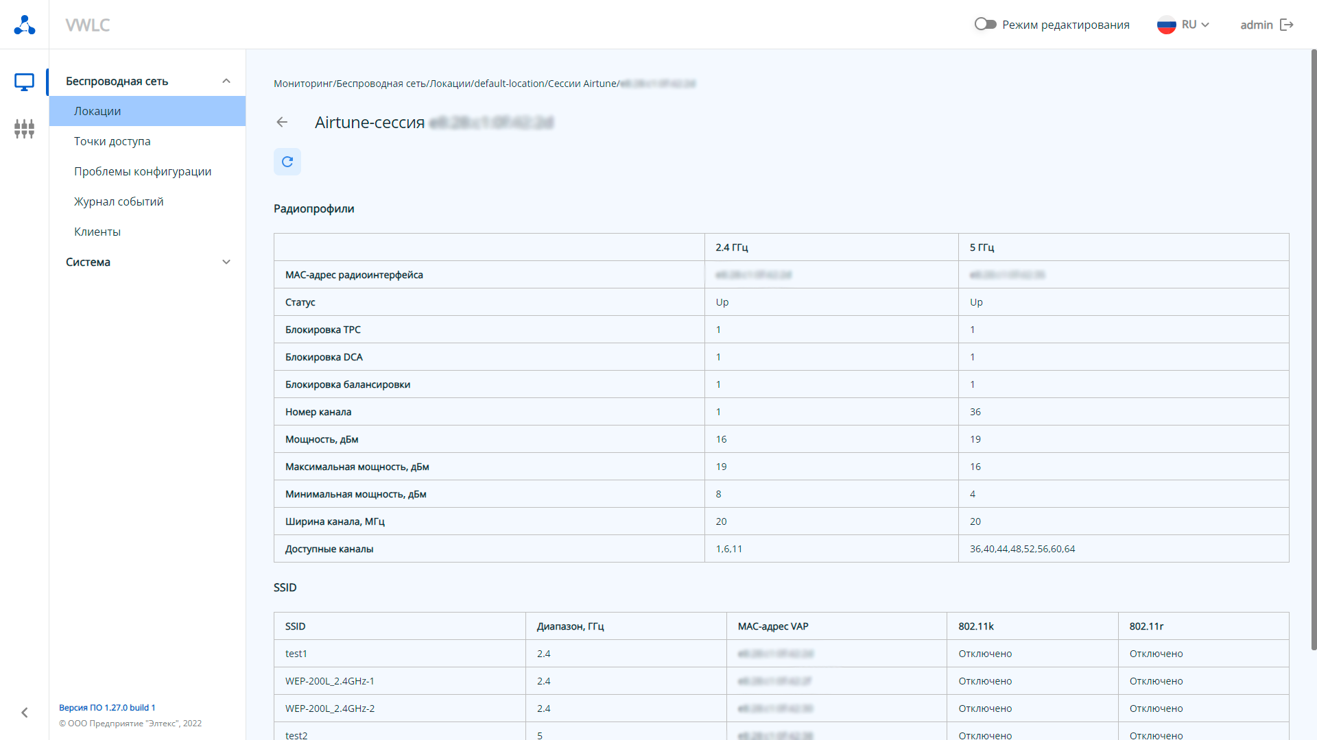 - В ELTEX-WLC-MIB добавлен OID eltWlcRadioUtilization (OID .1.3.6.1.4.1.35265.1.224.1.3.2.4.1.13) для получения значения текущей утилизации радиоканала