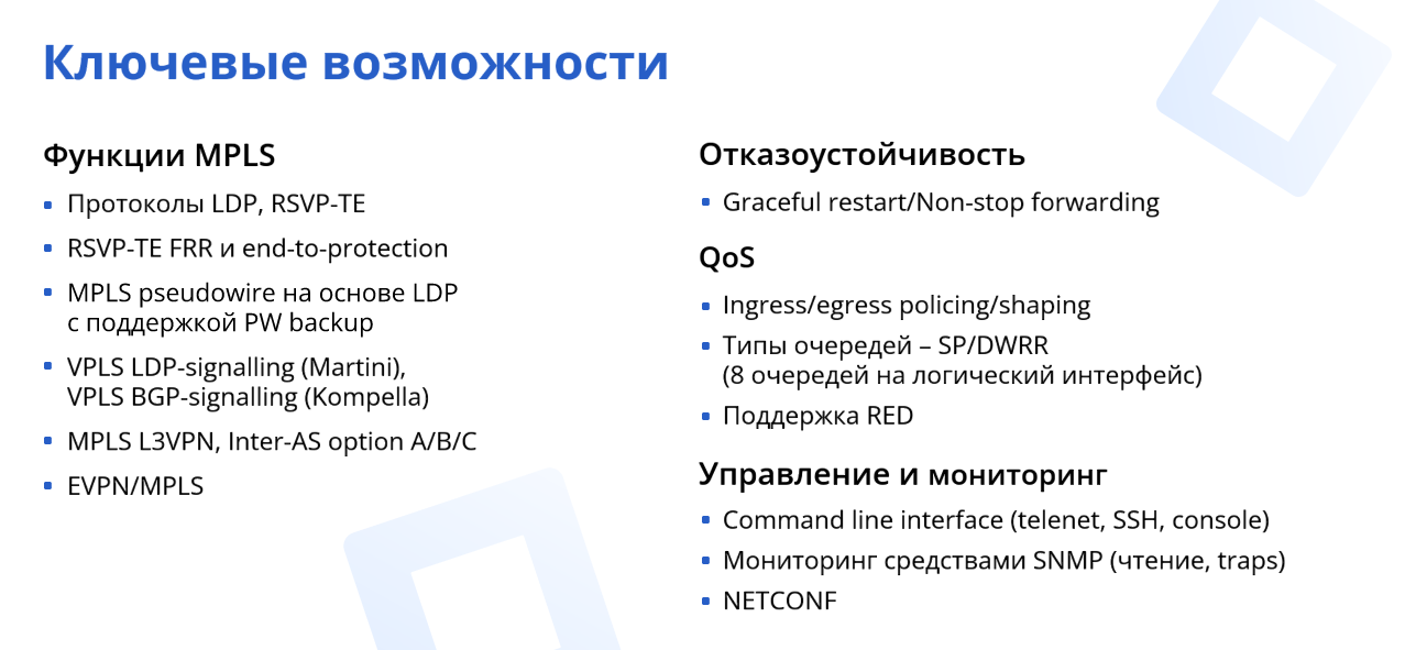 Расширенный перечень функциональных возможностей вы можете посмотреть в карточке продуктов на сайте Eltex.