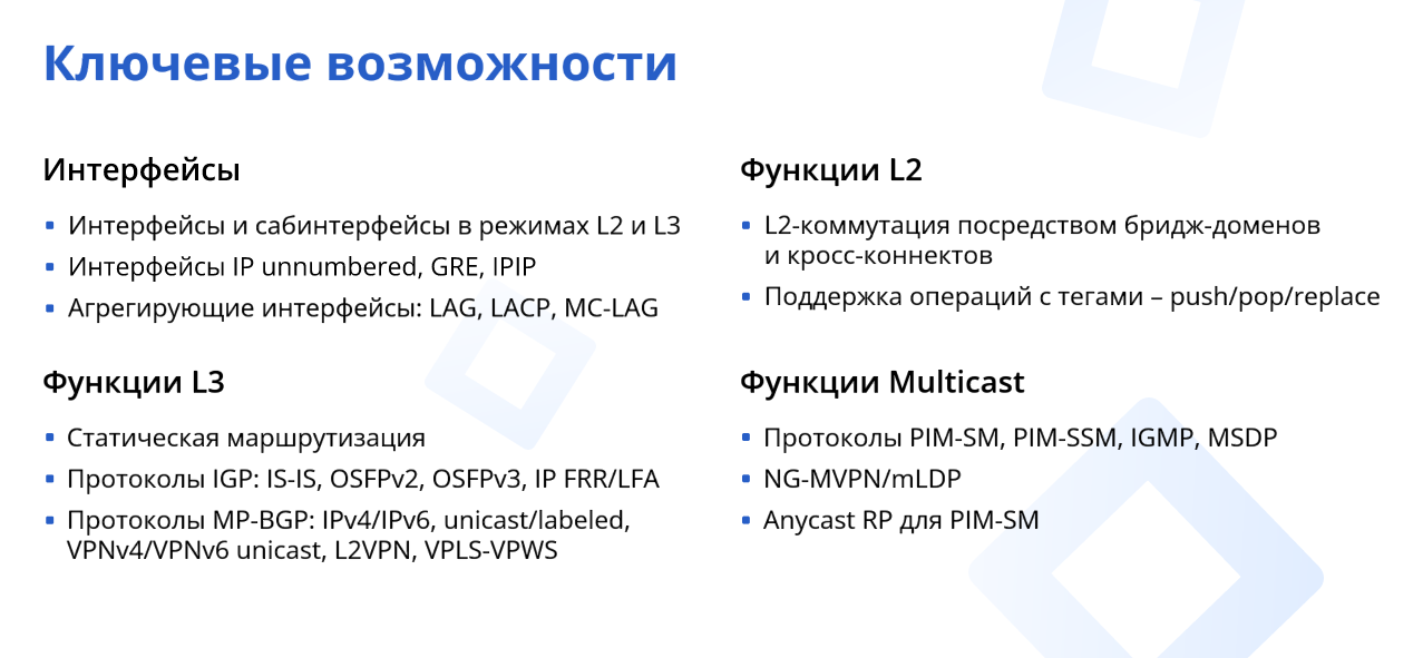 Такая архитектура обеспечивает стабильную производительность даже при максимальных нагрузках и сложных конфигурациях маршрутизации.