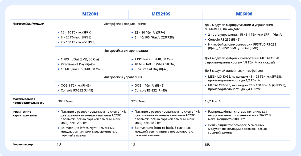ME6008 – модульная шасси-платформа с максимальной производительностью 19,2 Тбит/с для создания ядра магистральных сетей, куда стекаются основные объёмы трафика со всей сети.