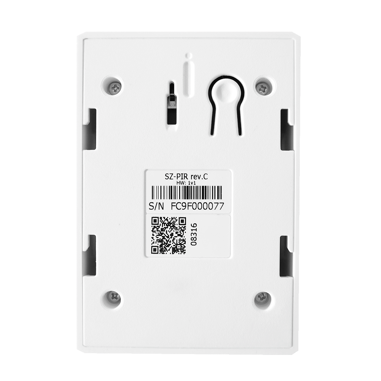 Объемный инфракрасный датчик движения SZ-PIR rev.C/rev.D работает по технологии Z-Wave. При обнаружении проникновения людей или животных датчик передает сигнал хабу умного дома. Работает от батарейки, поэтому его можно установить в выбранное место без проводов, также поддерживает режим FLiRS, благодаря чему экономно расходует заряд батареи. В устройство встроен датчик освещенности, с помощью которого свет может включатся и выключатся в зависимости от времени суток.