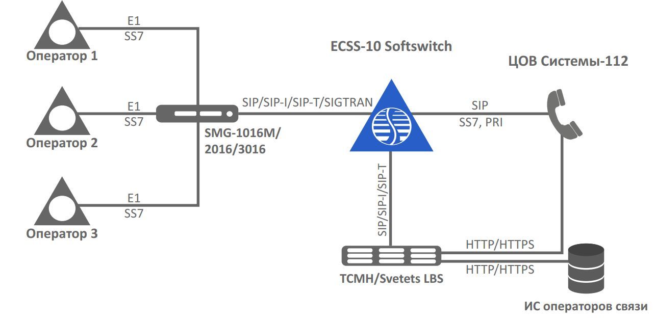 Система обеспечивает управление вызовами между операторами связи и Call-центром экстренных служб Системы-112. Интеграция осуществляется по каналам E1, протоколам SIGTRAN, SIP, SIP-T и SIP-I.