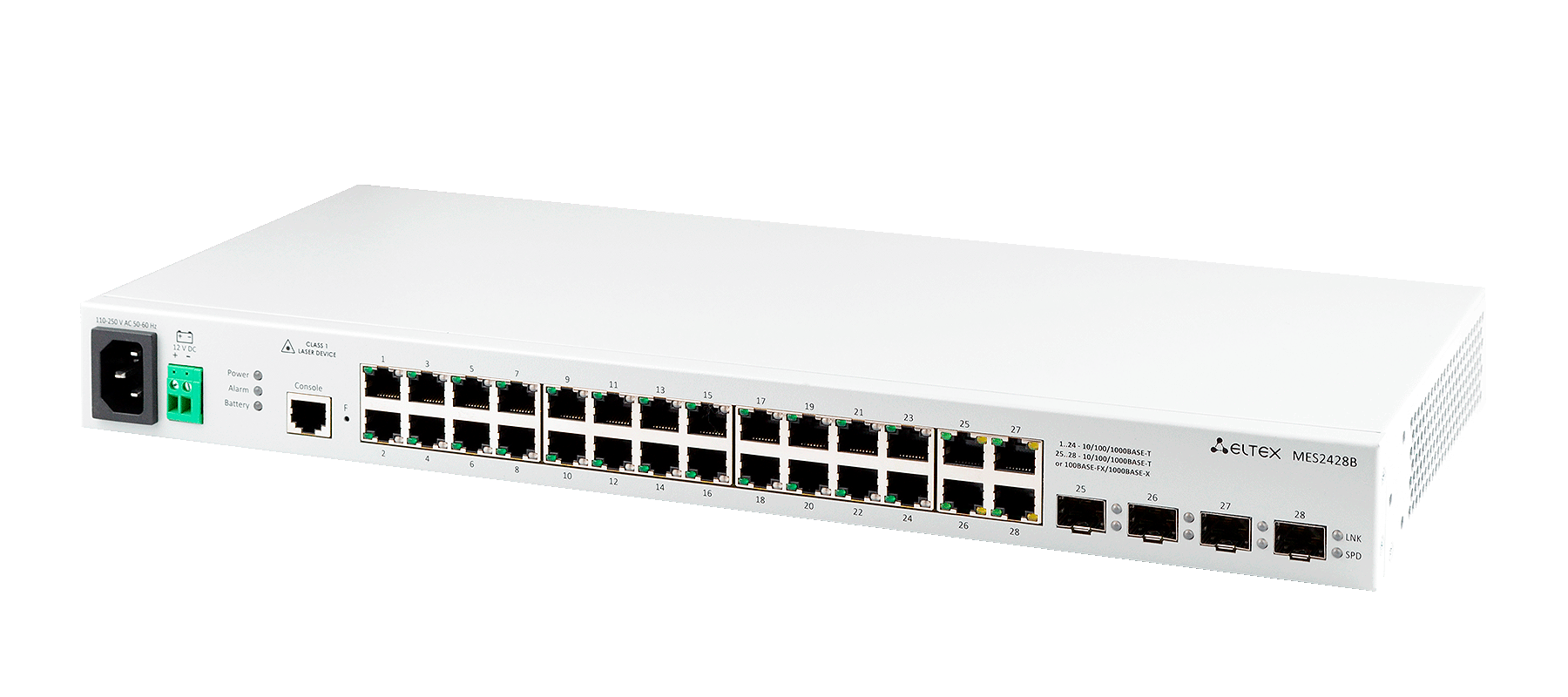 Коммутатор MES2428B подключает конечных пользователей к сети крупных предприятий, предприятий малого и среднего бизнеса и к сетям операторов связи с помощью интерфейсов Fast и Gigabit Ethernet. Оборудование поддерживает виртуальные локальные сети, многоадресные группы рассылки и имеют расширенный набор функций безопасности.