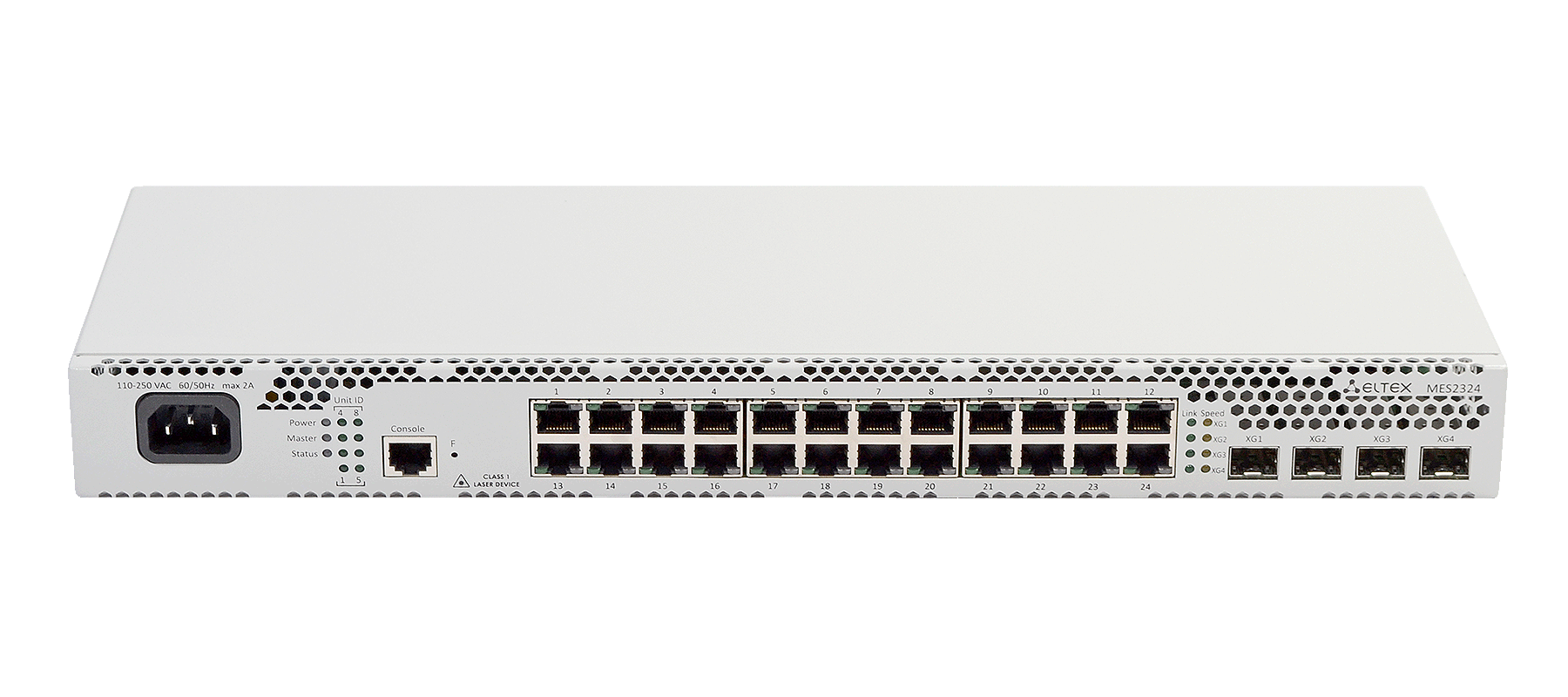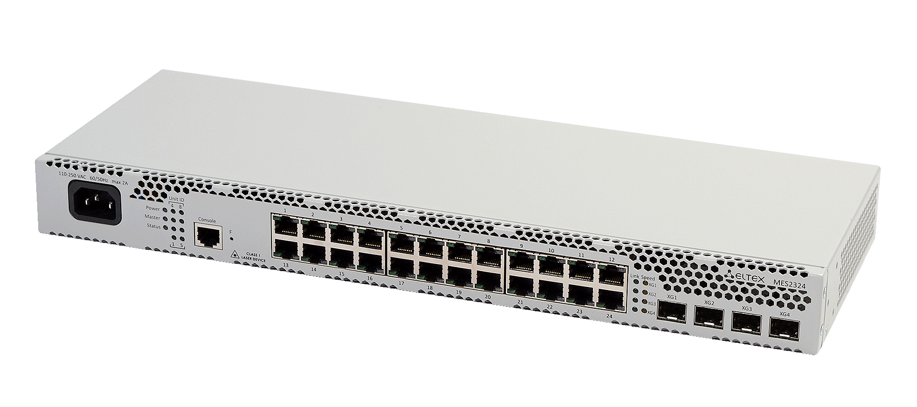 Коммутатор MES2324 подключает конечных пользователей к сети крупных предприятий, предприятий малого и среднего бизнеса и к сетям операторов связи с помощью интерфейсов 1G/10G. Функциональные возможности коммутатора обеспечивают физическое стекирование, поддержку виртуальных локальных сетей, многоадресных групп рассылки и расширенные функции безопасности.