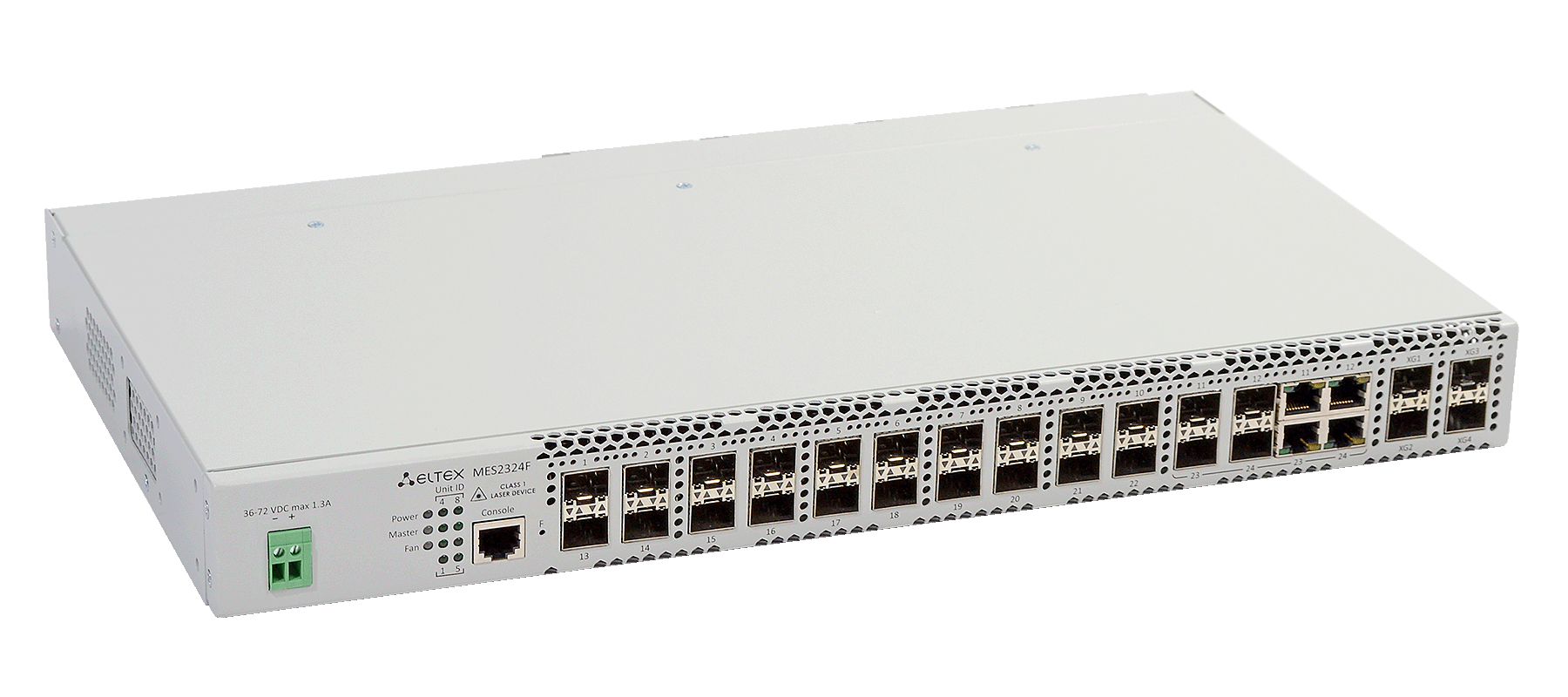 Коммутатор MES2324F DC осуществляет подключение конечных пользователей к сети крупных предприятий, предприятий малого и среднего бизнеса и к сетям операторов связи с помощью интерфейсов 1G/10G. Коммутатор может использоваться в операторских сетях в качестве коммутатора уровня агрегации района или транспортного коммутатора. Имеет значительный запас по производительности благодаря универсальным интерфейсам, работающим на скорости 10 Гбит/с или 1 Гбит/с.