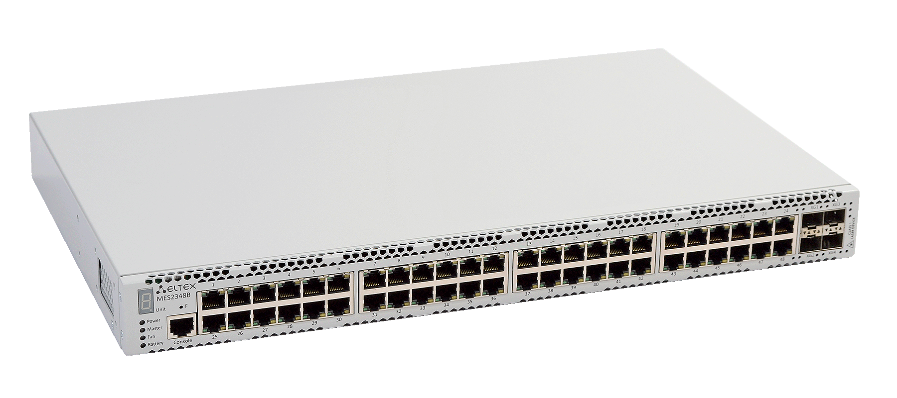 Коммутатор доступа MES2348B осуществляет подключение конечных пользователей к сети крупных предприятий, предприятий малого и среднего бизнеса и к сетям операторов связи с помощью интерфейсов 1G/10G. Функциональные возможности коммутатора обеспечивают физическое стекирование, поддержку виртуальных локальных сетей, многоадресных групп рассылки и расширенные функции безопасности.