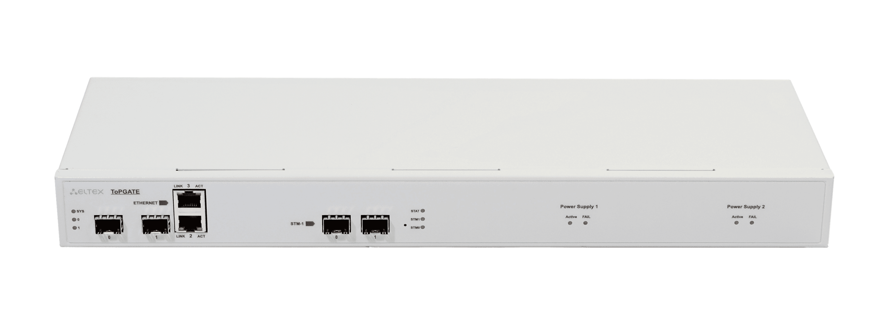 Мультиплексор TopGATE-2STM1-2FG предназначен для демультиплексирования структурированных или неструктурированных Е1 потоков (G.703, G.704) из SDH потока STM-1 и передачи их через пакетную сеть передачи данных Ethernet используя технологию TDMoP.