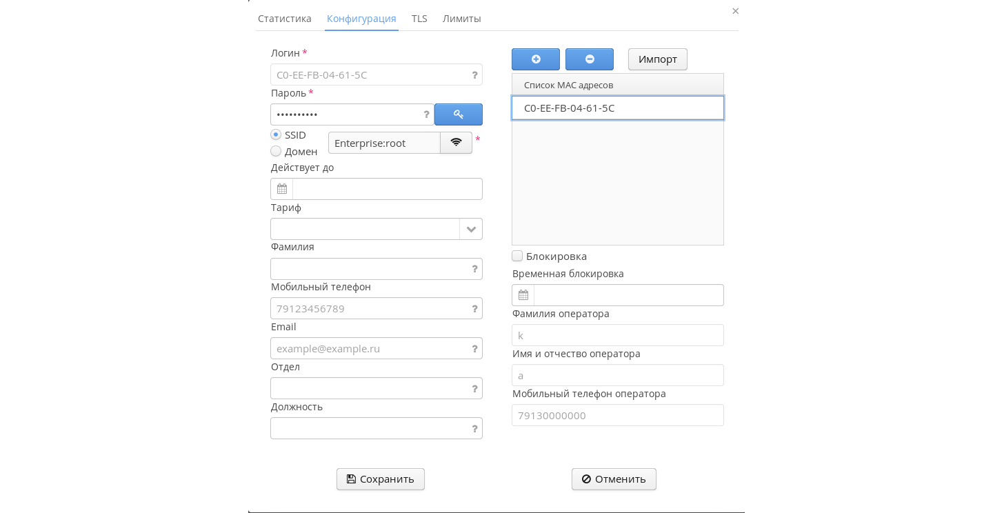 - RADIUS-сервер для аутентификации, авторизации и сбора статистики
