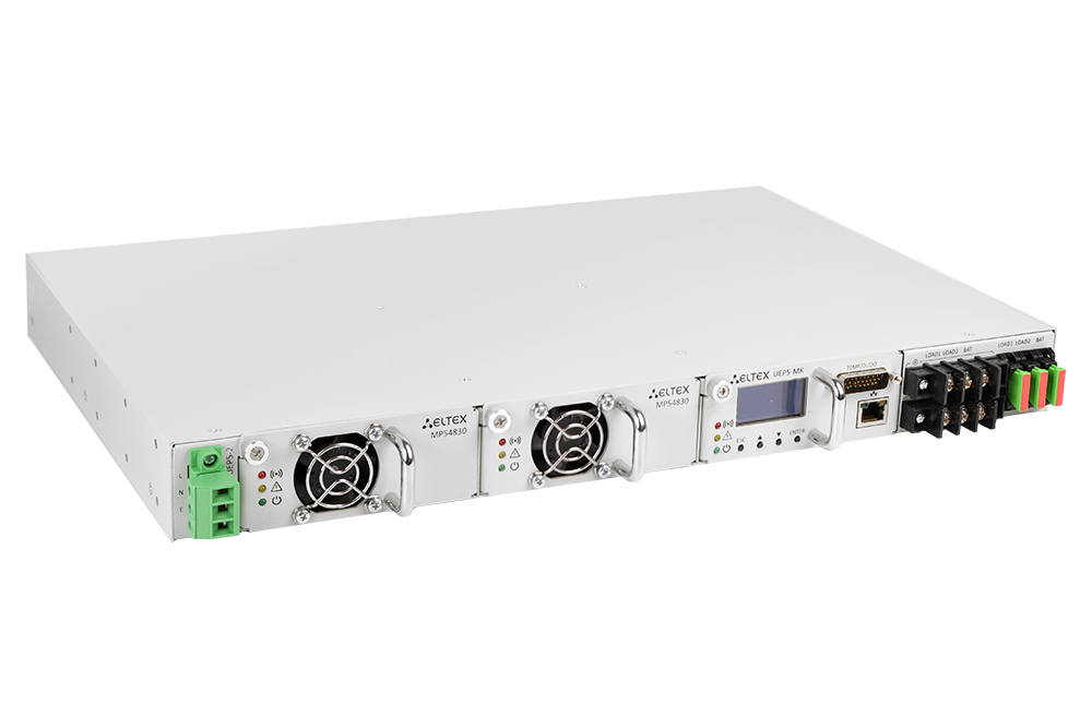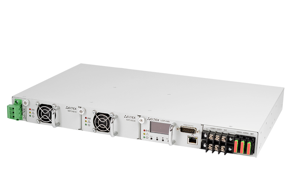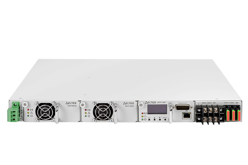 Устройство UEP5-2 предназначено для обеспечения электропитанием телекоммуникационного оборудования производства Eltex или других производителей с номинальным входным напряжением 48 В постоянного тока и мощностью до 3 кВт (60 А), а также для заряда свинцово-кислотной аккумуляторной батареи. UEP5-2 представляет собой модульную электропитающую установку, конструктивно выполненную в виде типового 19" каркаса высотой 1U.